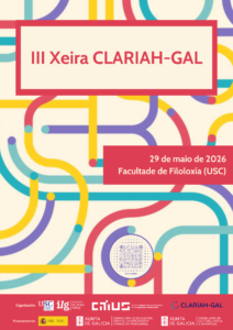 O 29 de maio terá lugar a III Xeira CLARIAH-GAL no salón de graos da Facultade de Filoloxía da Universidade de Santiago de Compostela, unha nova edición desta xornada dedicada ás Humanidades Dixitais e ás tecnoloxías lingüísticas aplicadas á investigación en Humanidades e Ciencias Sociais. A iniciativa está promovida por CLARIAH-GAL e procura favorecer o intercambio de coñecemento e a creación de redes entre investigadoras e investigadores que traballan nestes ámbitos. O prazo de inscrición encóntrase aberto ata o 22 de maio.